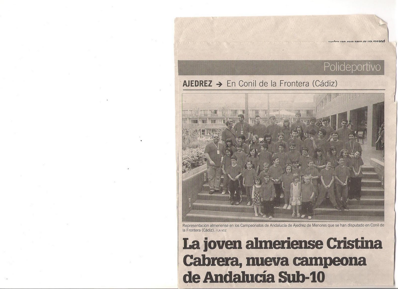 Dos recortes de periódico donde podemos ver a Juan Romero, Desiré Rodríguez y Laura Durán, todos ellos participaron en el Campeonato de Andalucía en Conil de la Frontera.